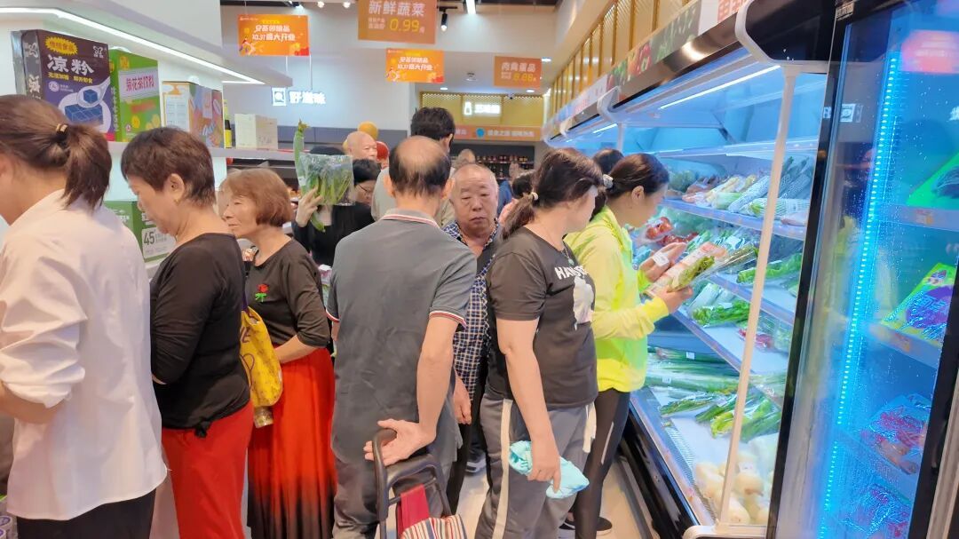 开业期间,店内人气高涨。小店以“小而全、精而优”为特色,商品品类却覆盖了米面粮油、新鲜蔬果、肉禽蛋奶、早餐食品及休闲零食等日常生活所需,旨在成为社区居民的“一站式购物新选择”。货架前顾客络绎不绝,纷纷驻足挑选心仪商品,收银台前也排起了长队,热闹非凡。